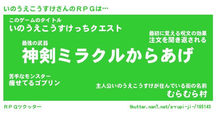 | 男性向けラノベタイトル風あだ名 | 『いのうえこうすけの憂鬱』 |