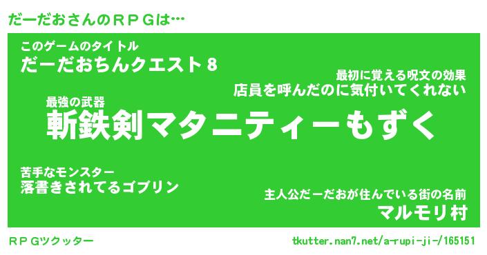 | 伝説のあだ名 | 『伝説のスナイパーだーだお』 |