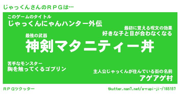 | 料理風あだ名 | 『節約★じゃっくんと油揚げの玉子丼』 |