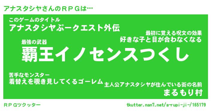 | 伝説のあだ名 | 『封印されしスナイパーアナスタシヤ』 |