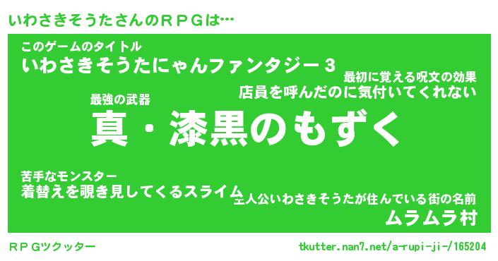 | 男性向けラノベタイトル風あだ名 | 『イワサキソウタアートオンライン』 |