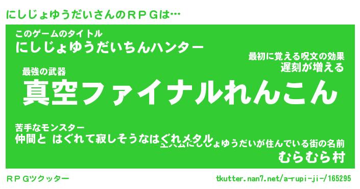 | 伝説のあだ名 | 『封印されし竜騎士にしじょゆうだい』 |