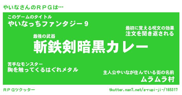 | ファンタジー風あだ名 | 『ヤイフェル』『エターナルヤイナー』 |
