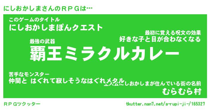 | ファンタジー風あだ名 | 『ニシフェル』『ファントムニシス』 |