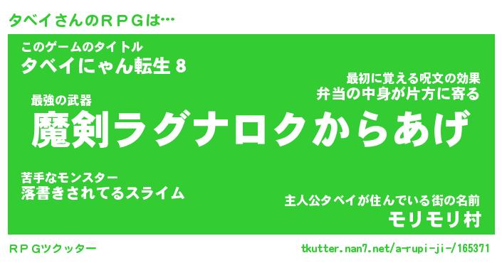 | 男性向けラノベタイトル風あだ名 | 『タベイの憂鬱』 |