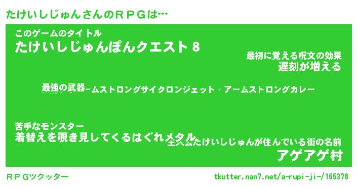 | ヘコむあだ名 | 『たけにー』『豆乳』『たけぷりん』 |