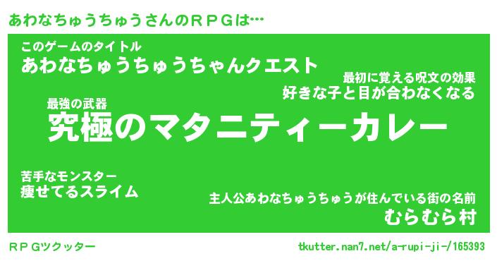 | ヒーロー風カッコイイあだ名 | 『スーパーアワナチュウチュウ』 |