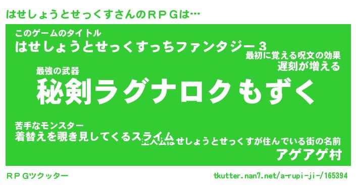 | 胡散臭い通販商品みたいなあだ名 | 『必ず成功するブレスレット…その名も「はせしょうとせっくす」』 |