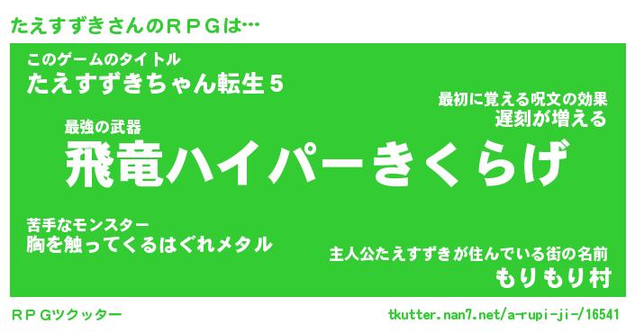 | 伝説のあだ名 | 『封印されし竜騎士たえすずき』 |