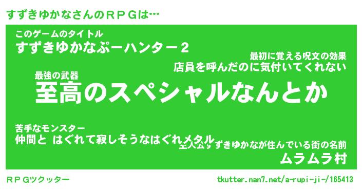 | 伝説のあだ名 | 『不死鳥の竜騎士すずきゆかな』 |