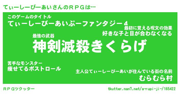 | 胡散臭い通販商品みたいなあだ名 | 『モテモテ間違いなし霊験あらたかなお札…その名も「てぃーしーびーあい」』 |