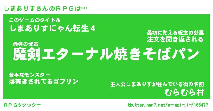 | 胡散臭い通販商品みたいなあだ名 | 『必ず成功する水晶球…その名も「しまありす」』 |