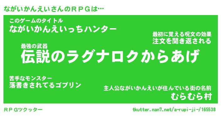 | 男性向けラノベタイトル風あだ名 | 『ながいかんえいの憂鬱』 |