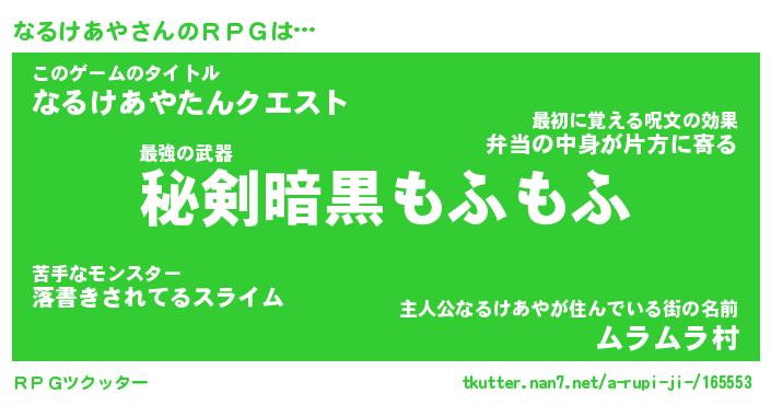 | 伝説のあだ名 | 『伝説の傭兵なるけあや』 |