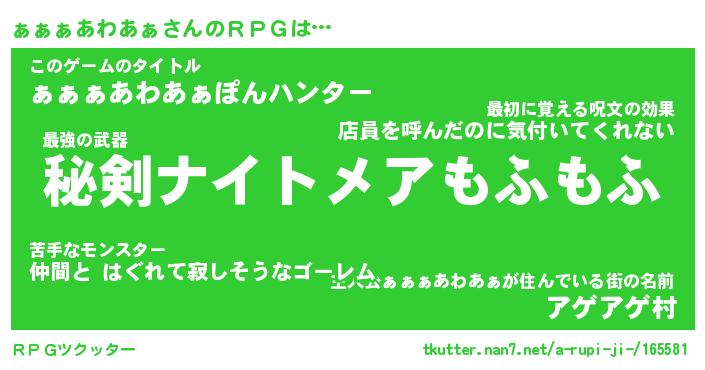 | 胡散臭い通販商品みたいなあだ名 | 『モテモテ間違いなし霊験あらたかなお札…その名も「ぁぁぁあわあぁ」』 |