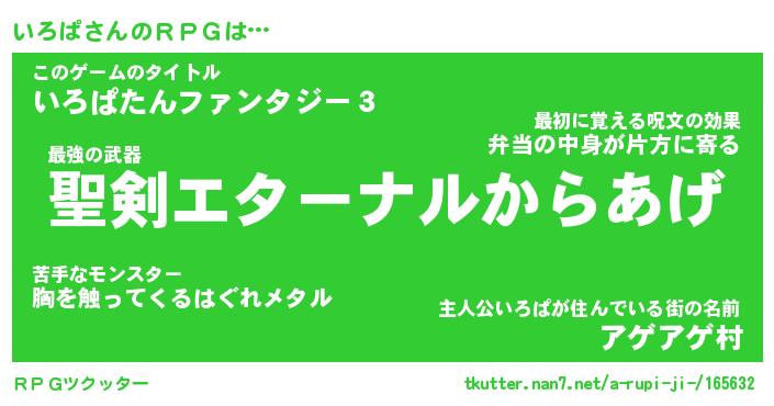 | 伝説のあだ名 | 『伝説の傭兵いろぱ』 |