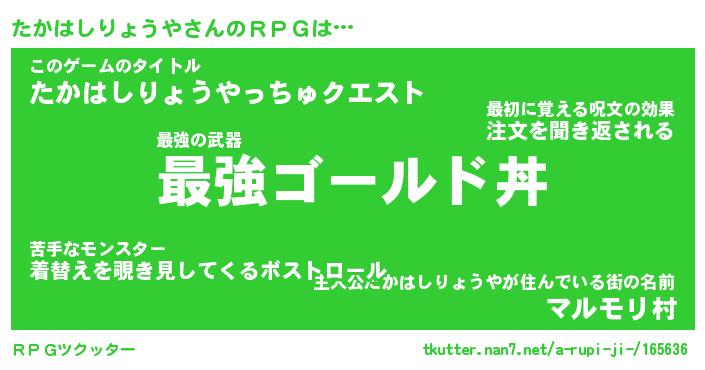 | 胡散臭い通販商品みたいなあだ名 | 『モテモテ間違いなし霊験あらたかなお札…その名も「たかはしりょうや」』 |