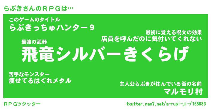 | ヒーロー風カッコイイあだ名 | 『スーパーラブキ』『ウルトラらぶきマン』 |
