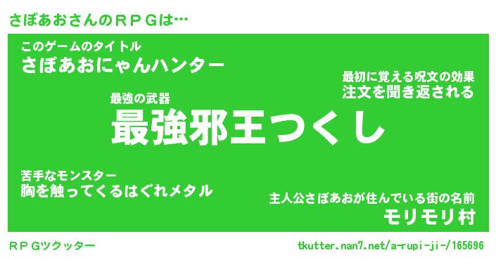 | ファンタジー風あだ名 | 『サボフェル』『エターナルサボアオー』 |