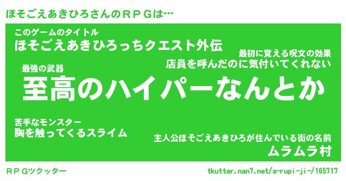 | 男性向けラノベタイトル風あだ名 | 『ホソゴエアキヒロアートオンライン』 |