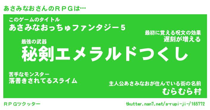 | 胡散臭い通販商品みたいなあだ名 | 『必ず成功する霊験あらたかなお札…その名も「あさみなお」』 |