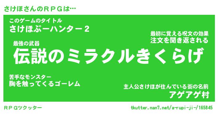 | ヒーロー風カッコイイあだ名 | 『スーパーサケホ』『ウルトラさけほマン』 |