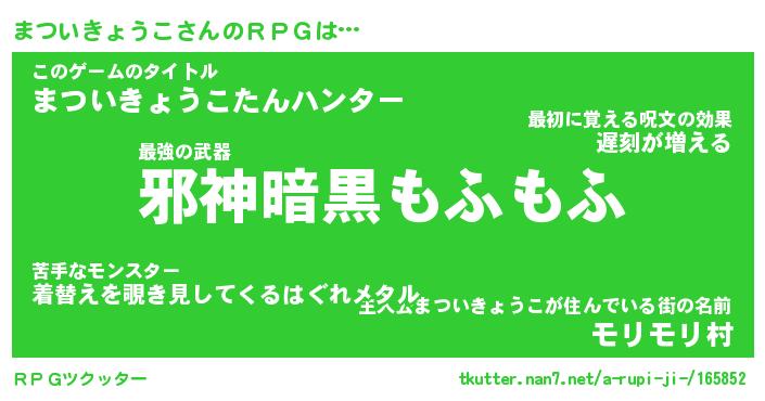 | 男性向けラノベタイトル風あだ名 | 『マツイキョウコアートオンライン』 |