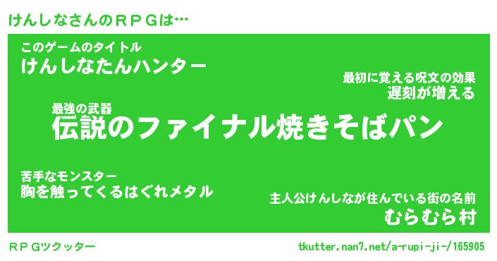 | ファンタジー風あだ名 | 『ケンフェル』『エターナルケンシナー』 |