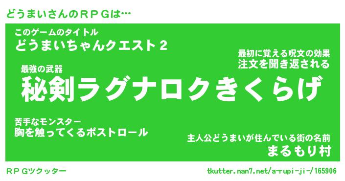 | 伝説のあだ名 | 『伝説の竜騎士どうまい』 |