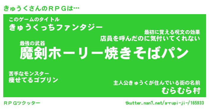 | ファンタジー風あだ名 | 『キュフェル』『エターナルキュウクー』 |