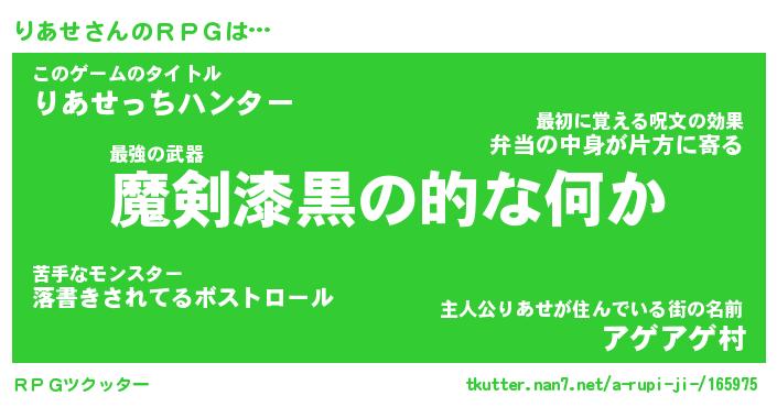 | 男性向けラノベタイトル風あだ名 | 『りあせの憂鬱』 |