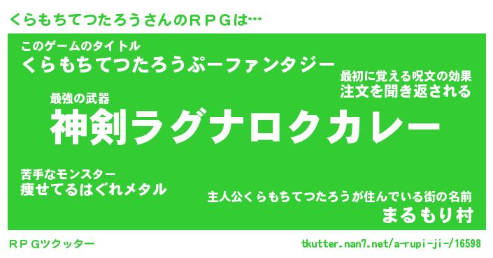 | 男性向けラノベタイトル風あだ名 | 『くらもちてつたろうの憂鬱』 |