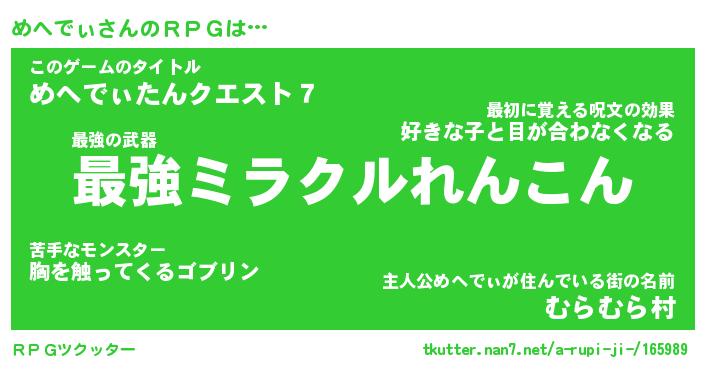 | ヘコむあだ名 | 『めへにー』『つくし』『めへを』 |