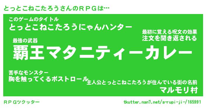 | 男性向けラノベタイトル風あだ名 | 『トットコネコタロウアートオンライン』 |
