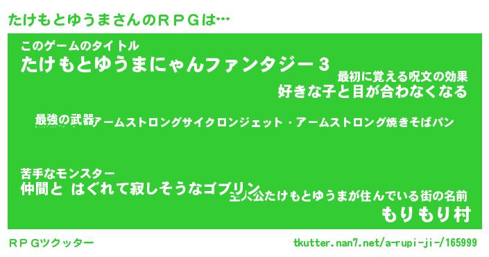 | ヘコむあだ名 | 『たけにー』『牛乳』『たけっ子』 |