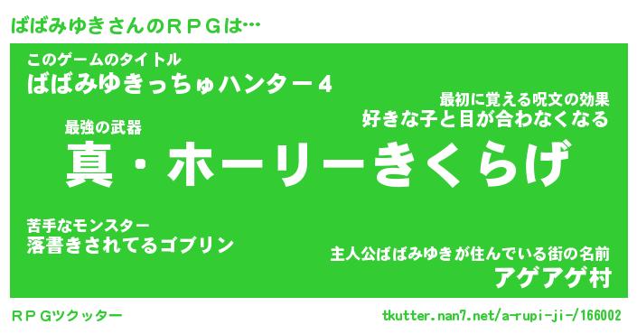 | 伝説のあだ名 | 『封印されし傭兵ばばみゆき』 |