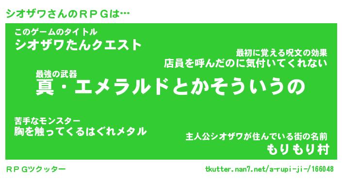 | ファンタジー風あだ名 | 『シオフェル』『エターナルシオザワー』 |