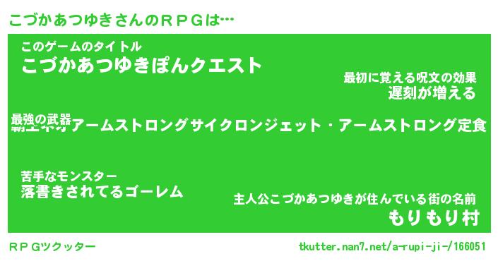 | 男性向けラノベタイトル風あだ名 | 『コヅカアツユキアートオンライン』 |
