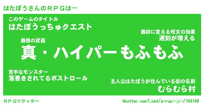 | 男性向けラノベタイトル風あだ名 | 『ハタボウアートオンライン』 |