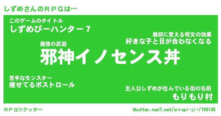| ファンタジー風あだ名 | 『シズフェル』『エターナルシズメー』 |
