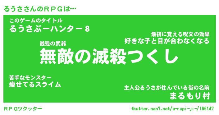 | ファンタジー風あだ名 | 『ルウフェル』『エターナルルウサー』 |