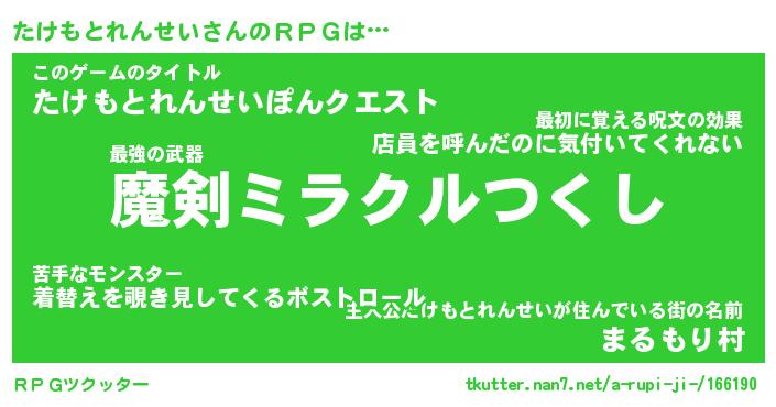 | 胡散臭い通販商品みたいなあだ名 | 『必ず成功するブレスレット…その名も「たけもとれんせい」』 |