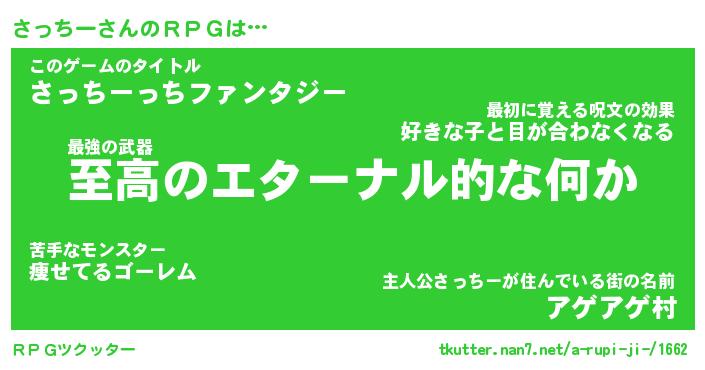 | ファンタジー風あだ名 | 『サッフェル』『エターナルサッチーー』 |