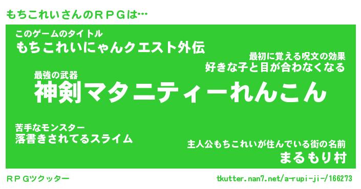 | ファンタジー風あだ名 | 『モチフェル』『エターナルモチコレイー』 |