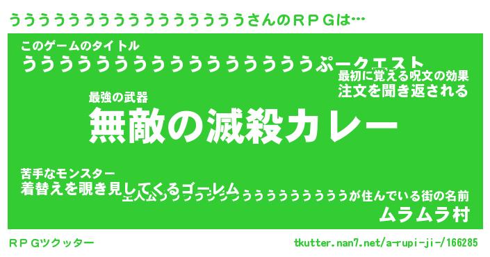 | 胡散臭い通販商品みたいなあだ名 | 『モテモテ間違いなし霊験あらたかなお札…その名も「うううううううううううううううう」』 |