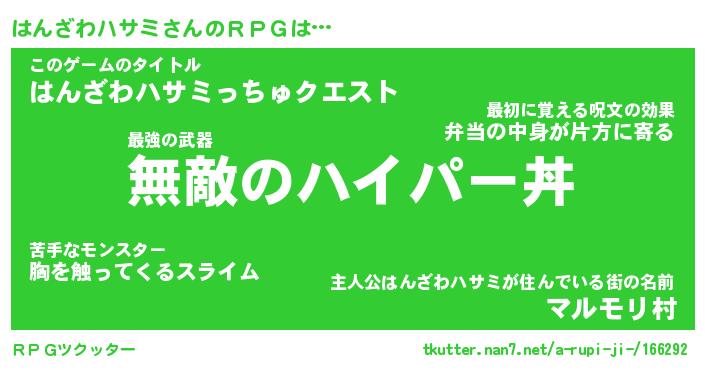 | 伝説のあだ名 | 『不死鳥の竜騎士はんざわハサミ』 |