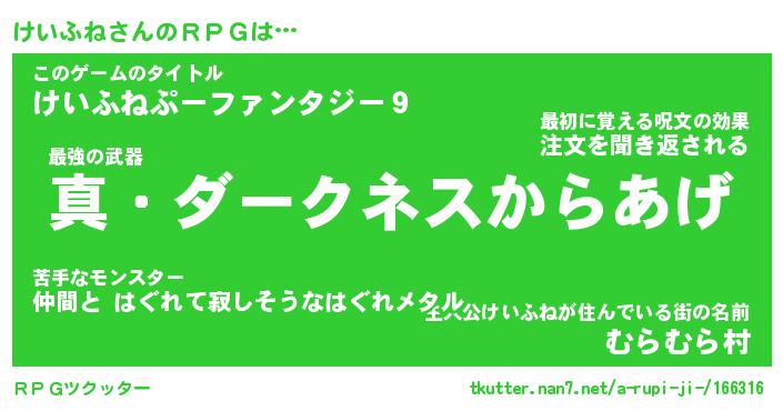 | ファンタジー風あだ名 | 『ケイフェル』『エターナルケイフネー』 |
