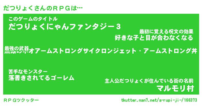 | ヒーロー風カッコイイあだ名 | 『スーパーダツリョク』『暗黒騎士ダツ』 |
