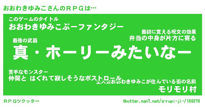 | 伝説のあだ名 | 『封印されし傭兵おおわきゆみこ』 |