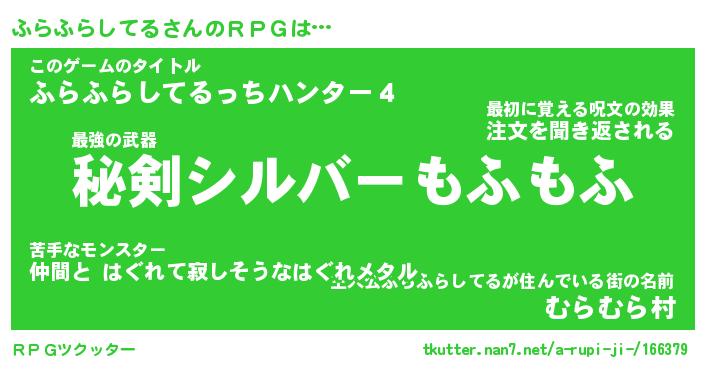 | ヘコむあだ名 | 『ふらもー』『酢こんぶ』『ふらっ子』 |